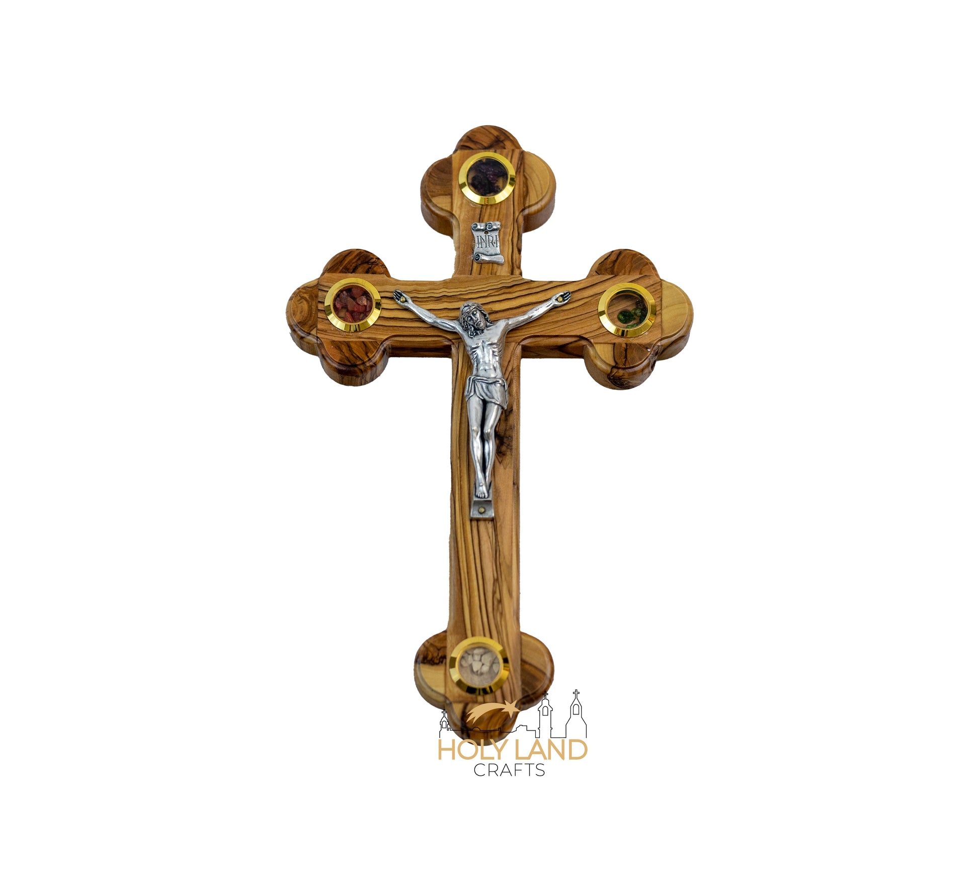 11″ Olive Wood Crucifix with Relics from the Holy Land