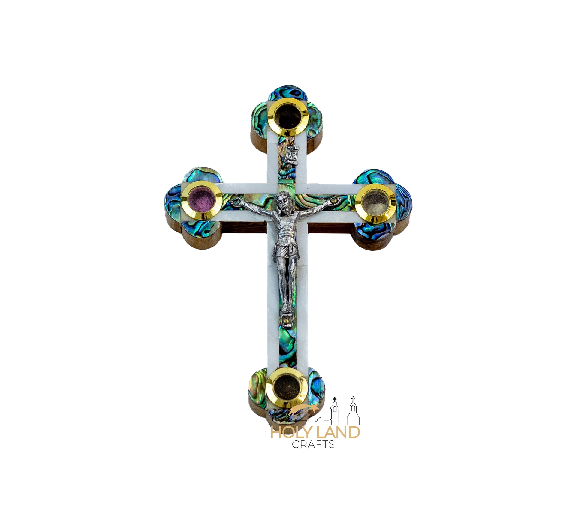 5″ Olive Wood Crucifix with Abolone and Mother of pearl